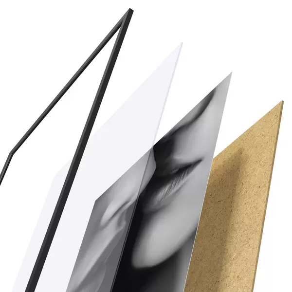 Le poster se compose d'un cadre, d'un plexiglas, d'une image imprimée et d'un support en aggloméré. Le poster peut être immédiatement accroché au mur grâce aux fixations au dos.