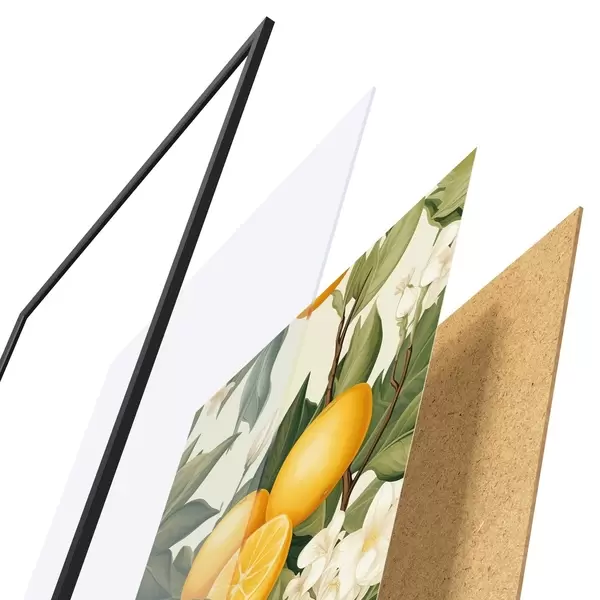 Le poster se compose d'un cadre, d'un plexiglas, d'une image imprimée et d'un support en aggloméré. Le poster peut être immédiatement accroché au mur grâce aux fixations au dos.