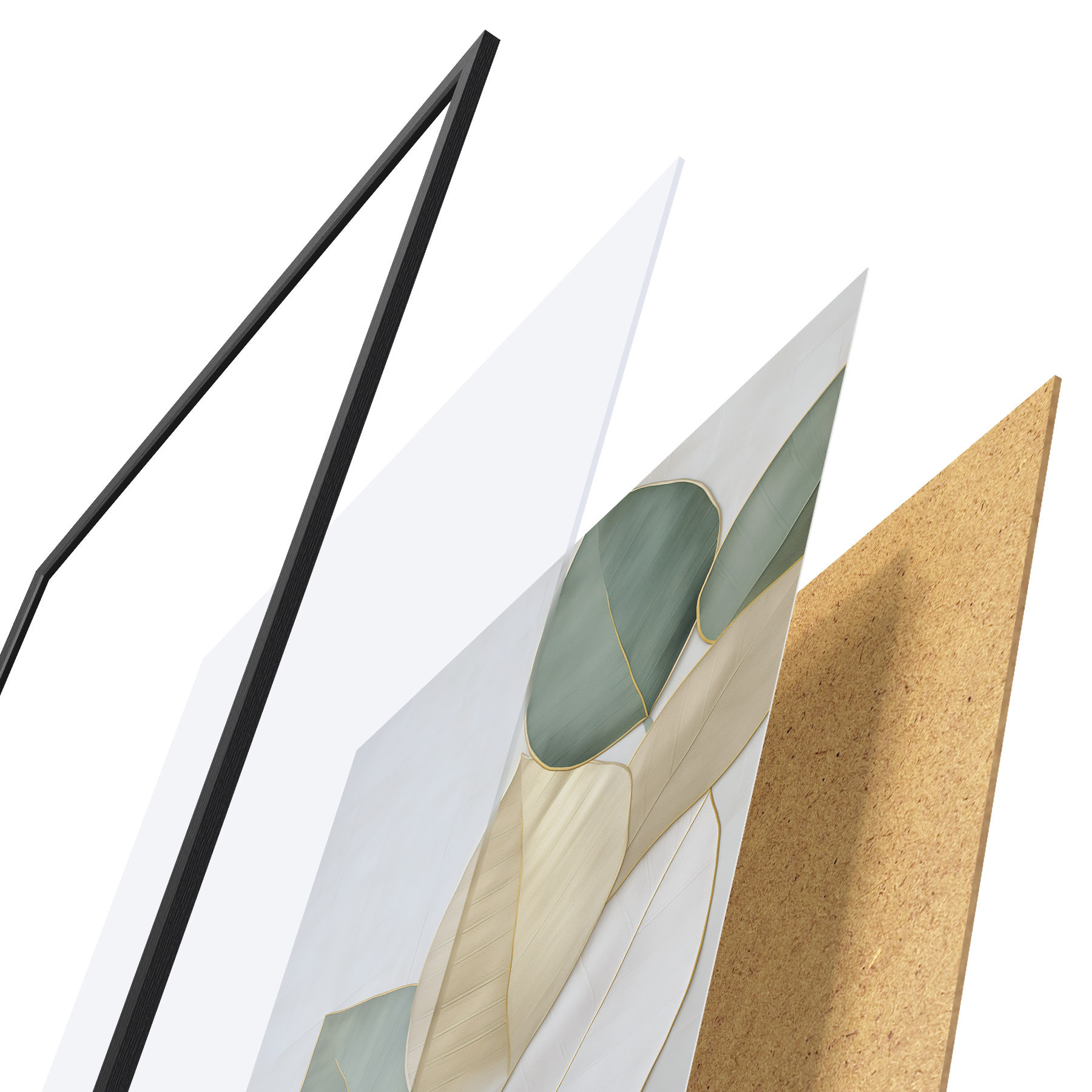 Le poster se compose d'un cadre, d'un plexiglas, d'une image imprimée et d'un support en aggloméré. Le poster peut être immédiatement accroché au mur grâce aux fixations au dos.