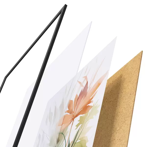 Le poster se compose d'un cadre, d'un plexiglas, d'une image imprimée et d'un support en aggloméré. Le poster peut être immédiatement accroché au mur grâce aux fixations au dos.