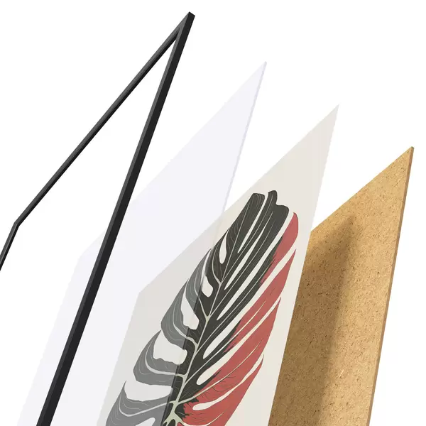 Le poster se compose d'un cadre, d'un plexiglas, d'une image imprimée et d'un support en aggloméré. Le poster peut être immédiatement accroché au mur grâce aux fixations au dos.