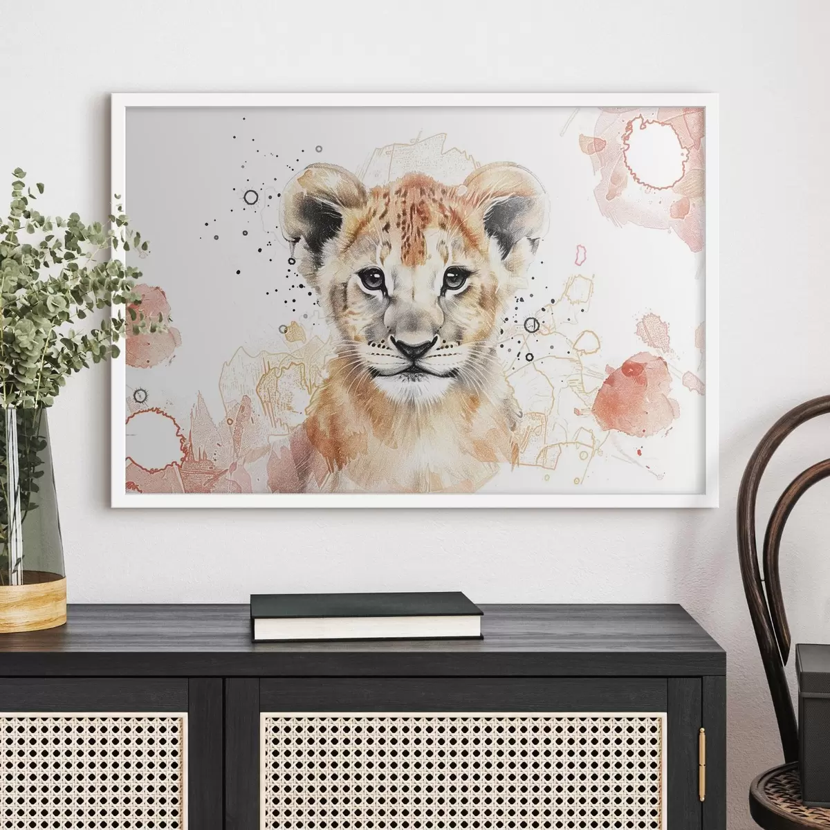 Affiche Lionceau aquarelle, effet crayonné Non f47742