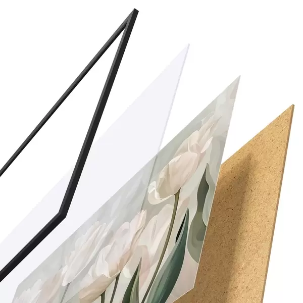 Le poster se compose d'un cadre, d'un plexiglas, d'une image imprimée et d'un support en aggloméré. Le poster peut être immédiatement accroché au mur grâce aux fixations au dos.