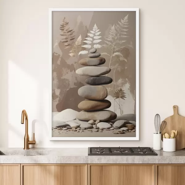 Affiche Pile de pierres lisses avec un arrière-plan botanique f47764