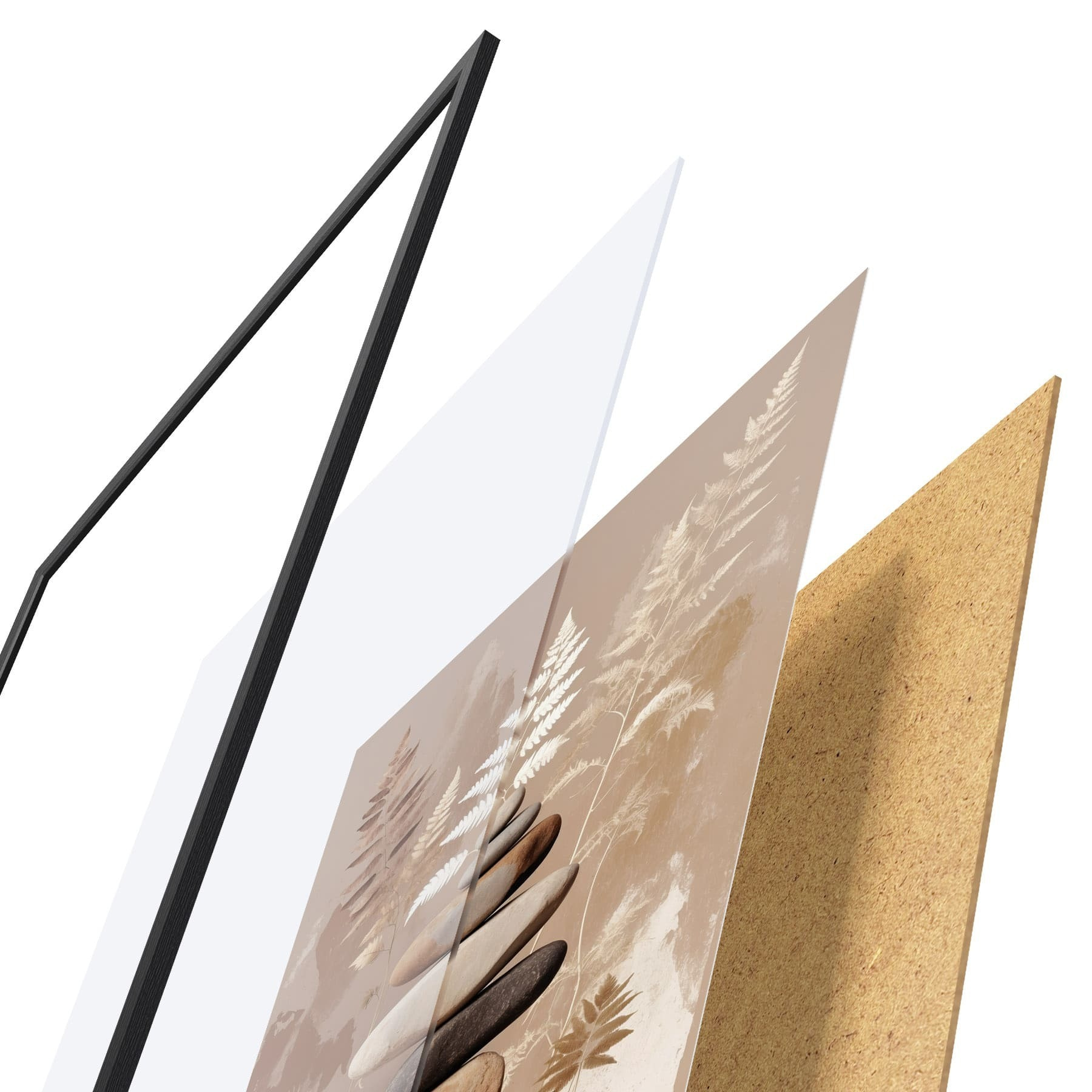 Le poster se compose d'un cadre, d'un plexiglas, d'une image imprimée et d'un support en aggloméré. Le poster peut être immédiatement accroché au mur grâce aux fixations au dos.