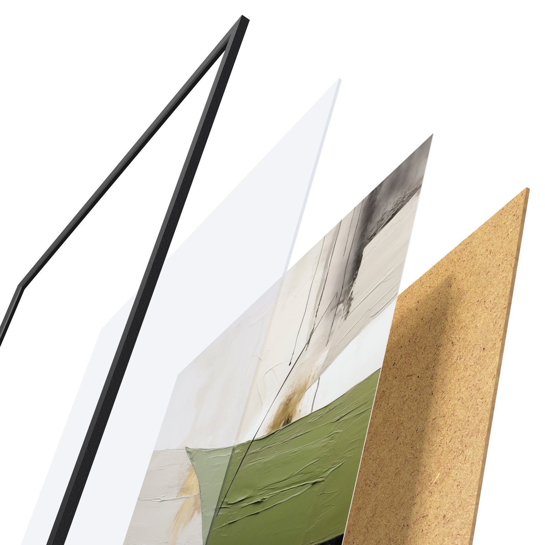 Le poster se compose d'un cadre, d'un plexiglas, d'une image imprimée et d'un support en aggloméré. Le poster peut être immédiatement accroché au mur grâce aux fixations au dos.