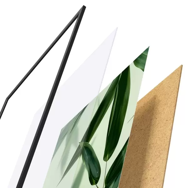 Le poster se compose d'un cadre, d'un plexiglas, d'une image imprimée et d'un support en aggloméré. Le poster peut être immédiatement accroché au mur grâce aux fixations au dos.