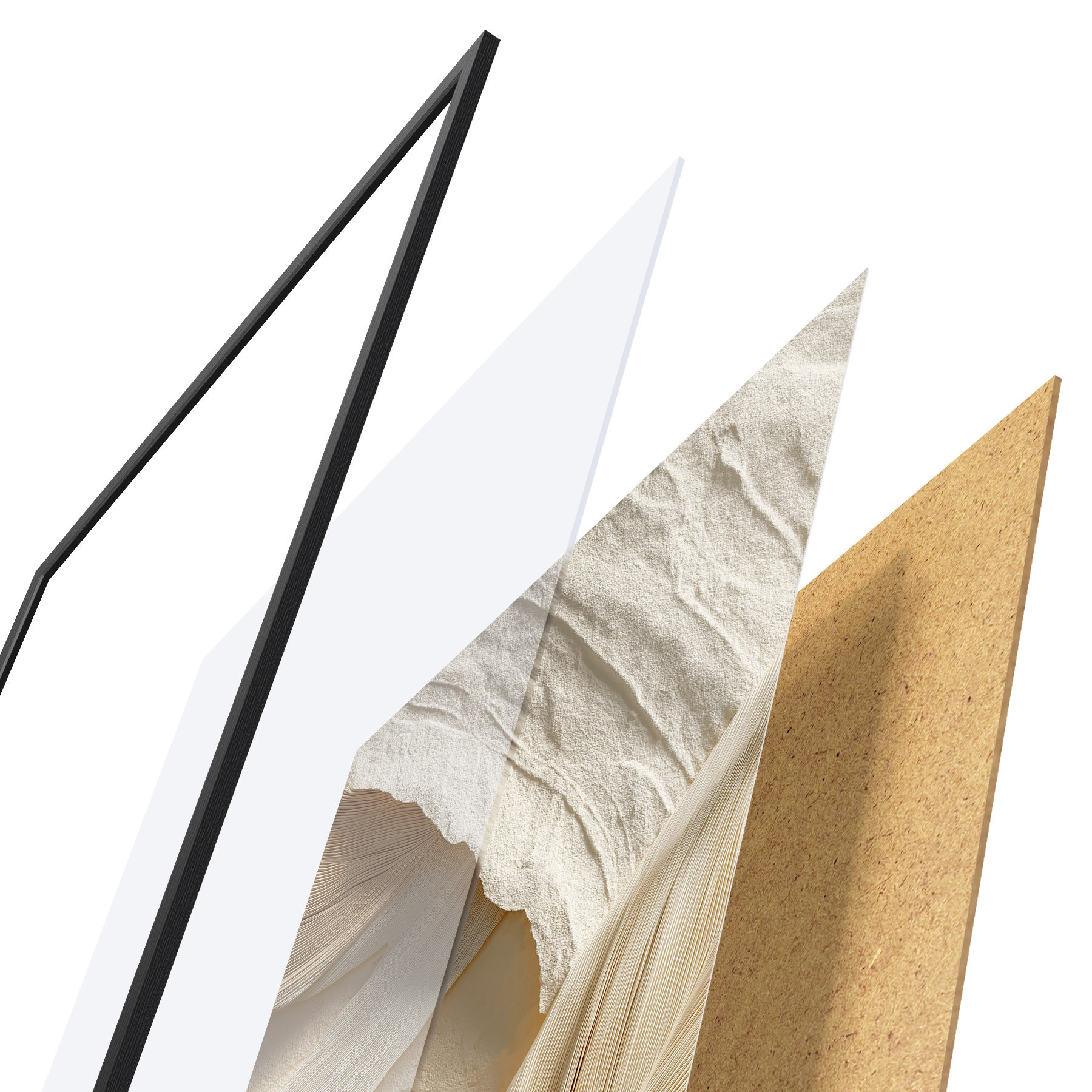 Le poster se compose d'un cadre, d'un plexiglas, d'une image imprimée et d'un support en aggloméré. Le poster peut être immédiatement accroché au mur grâce aux fixations au dos.