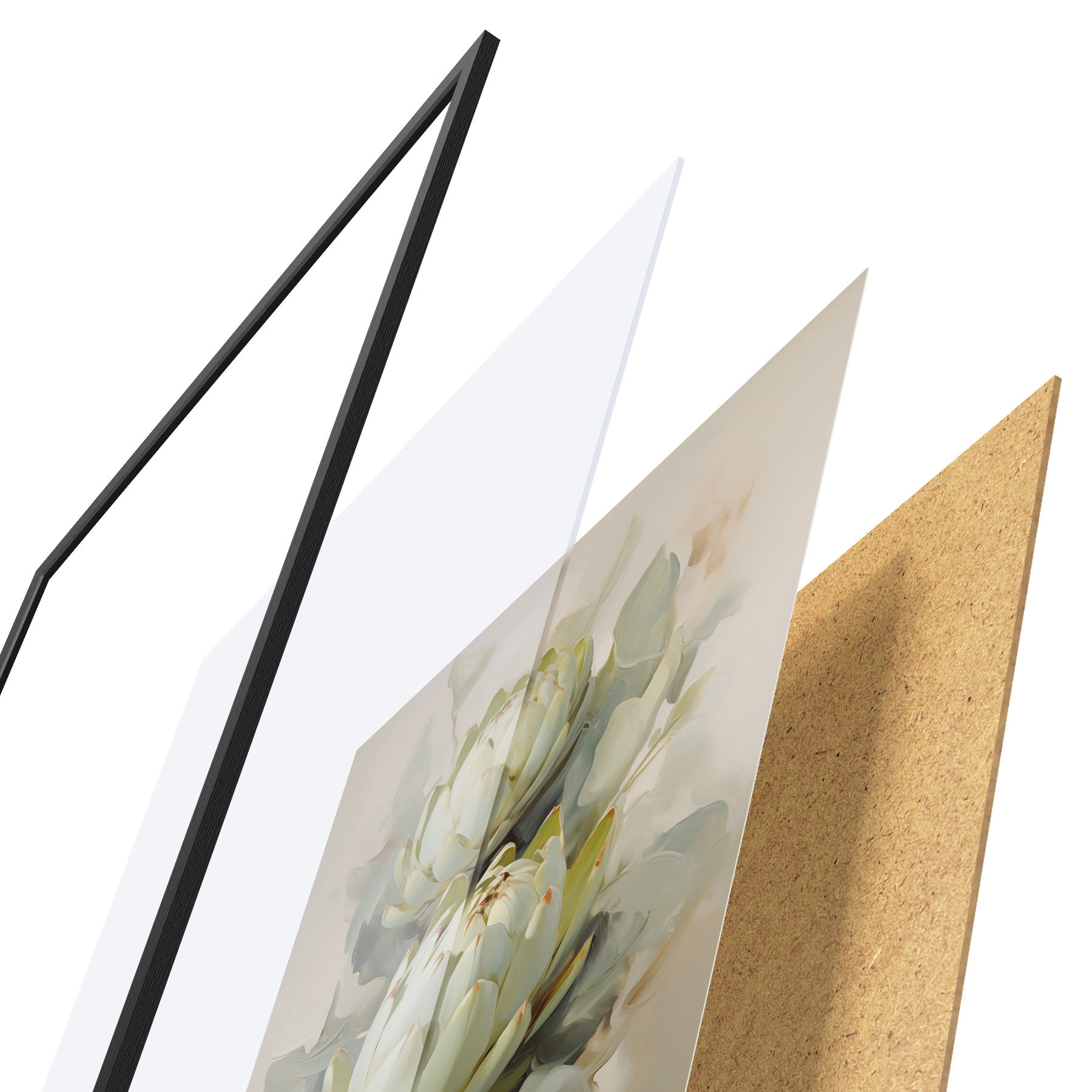 Le poster se compose d'un cadre, d'un plexiglas, d'une image imprimée et d'un support en aggloméré. Le poster peut être immédiatement accroché au mur grâce aux fixations au dos.