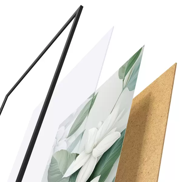 Le poster se compose d'un cadre, d'un plexiglas, d'une image imprimée et d'un support en aggloméré. Le poster peut être immédiatement accroché au mur grâce aux fixations au dos.
