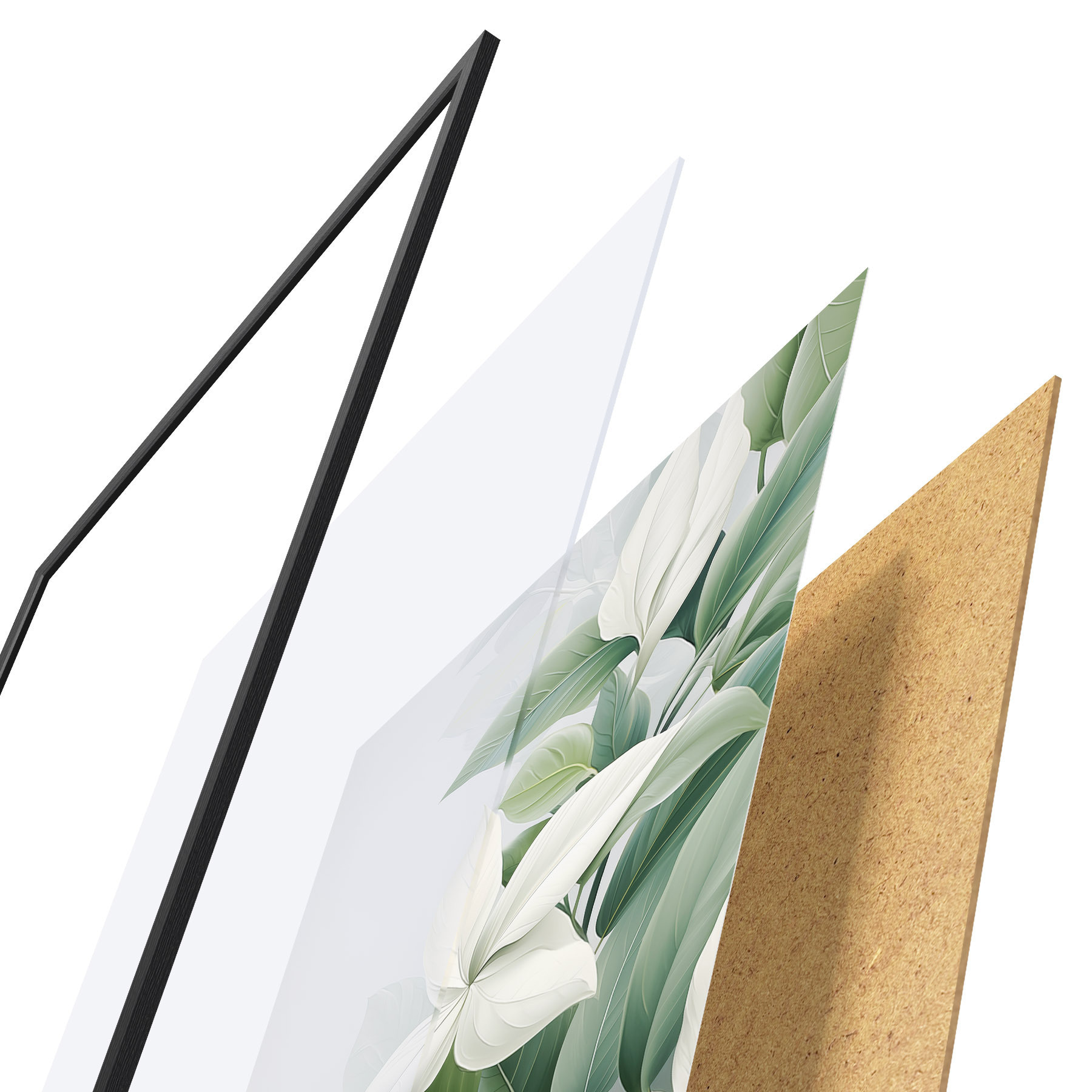 Le poster se compose d'un cadre, d'un plexiglas, d'une image imprimée et d'un support en aggloméré. Le poster peut être immédiatement accroché au mur grâce aux fixations au dos.