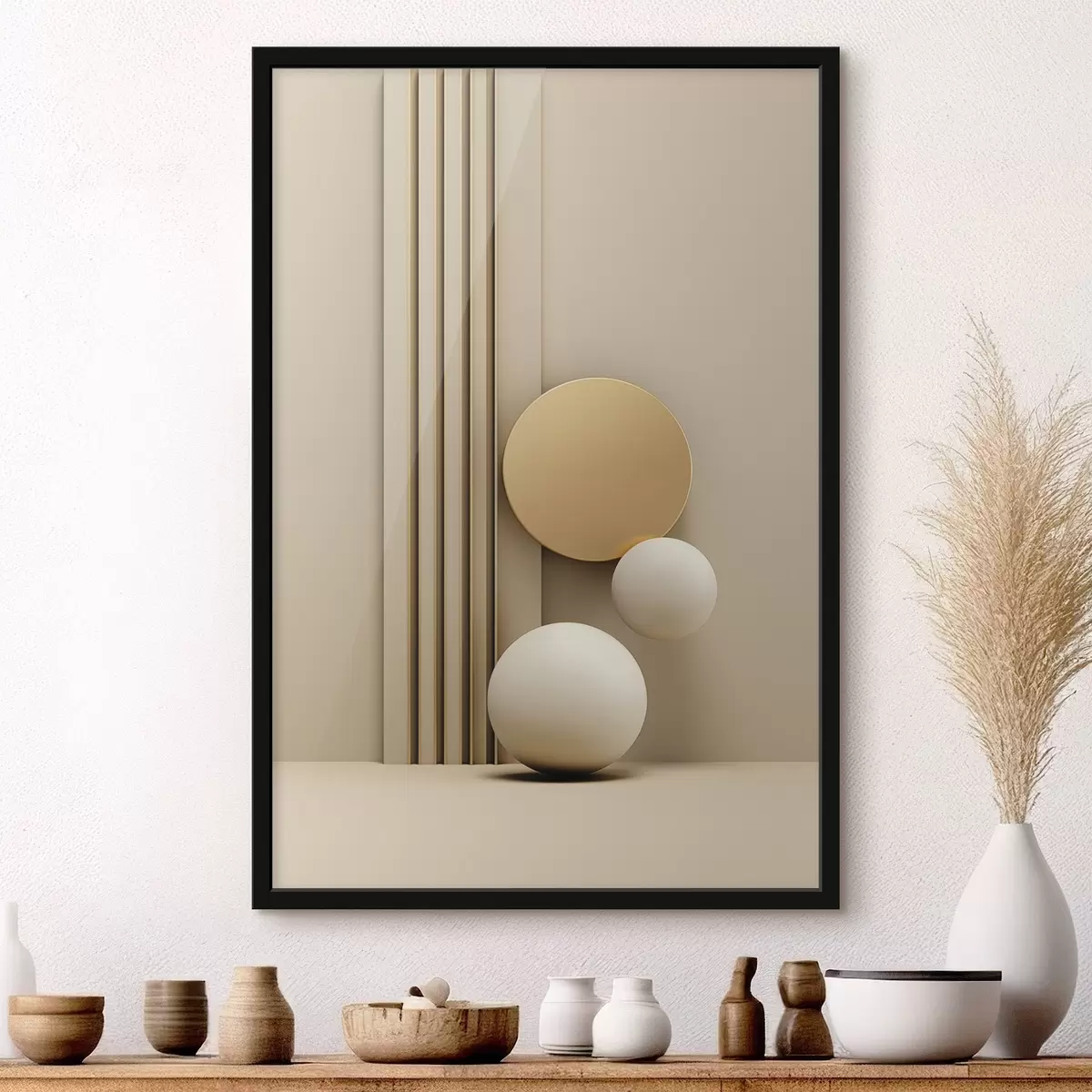 Affiche Art moderne abstrait beige avec lignes verticales et sphères f47871