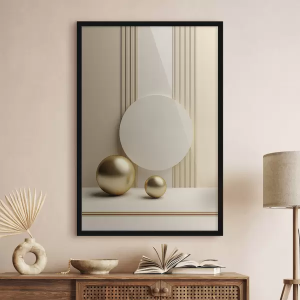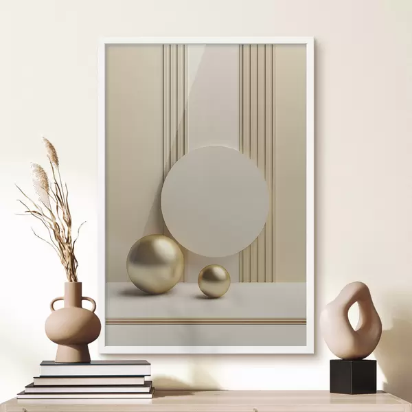 Affiche Art moderne abstrait beige avec lignes verticales et sphères f47872