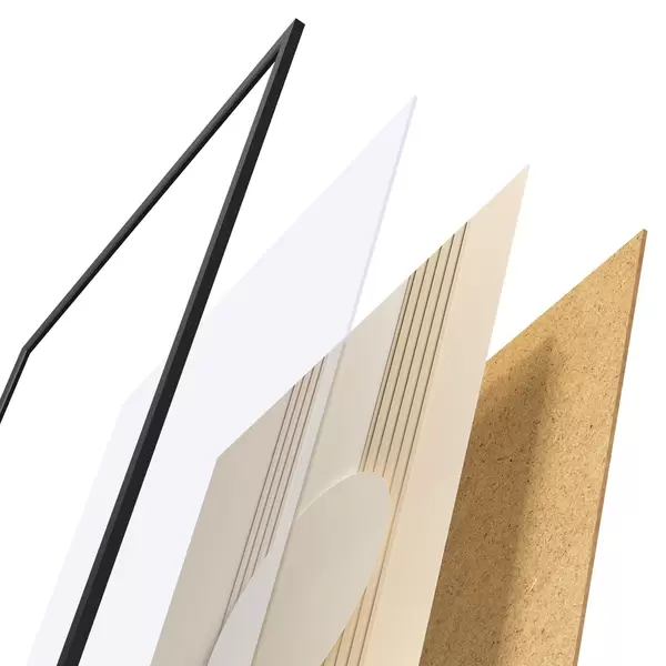 Le poster se compose d'un cadre, d'un plexiglas, d'une image imprimée et d'un support en aggloméré. Le poster peut être immédiatement accroché au mur grâce aux fixations au dos.
