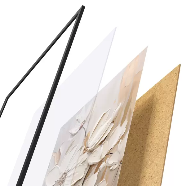Le poster se compose d'un cadre, d'un plexiglas, d'une image imprimée et d'un support en aggloméré. Le poster peut être immédiatement accroché au mur grâce aux fixations au dos.