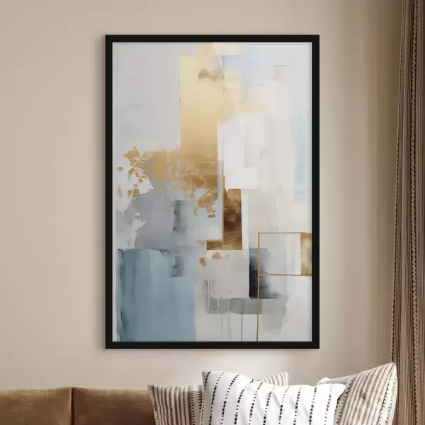 Affiche Formes géométriques abstraites aux couleurs jaune, bleu et blanc, composition texturée et minimaliste f47881