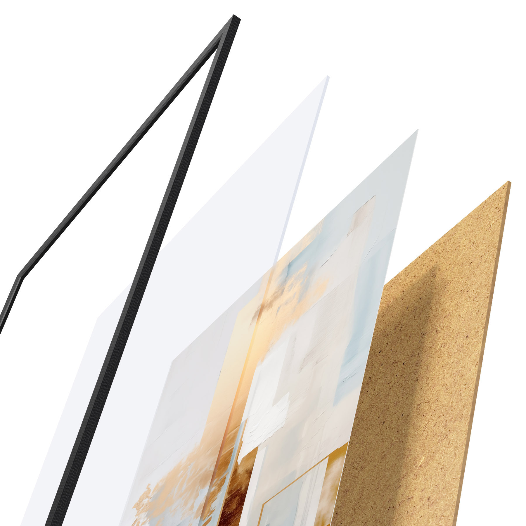 Le poster se compose d'un cadre, d'un plexiglas, d'une image imprimée et d'un support en aggloméré. Le poster peut être immédiatement accroché au mur grâce aux fixations au dos.