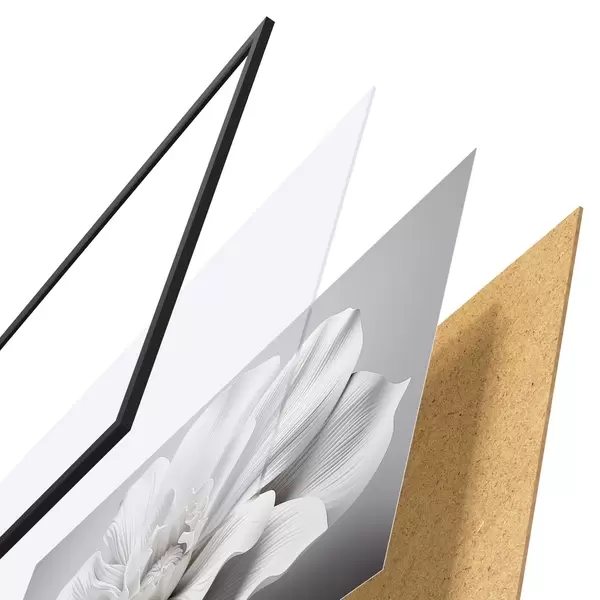 Le poster se compose d'un cadre, d'un plexiglas, d'une image imprimée et d'un support en aggloméré. Le poster peut être immédiatement accroché au mur grâce aux fixations au dos.