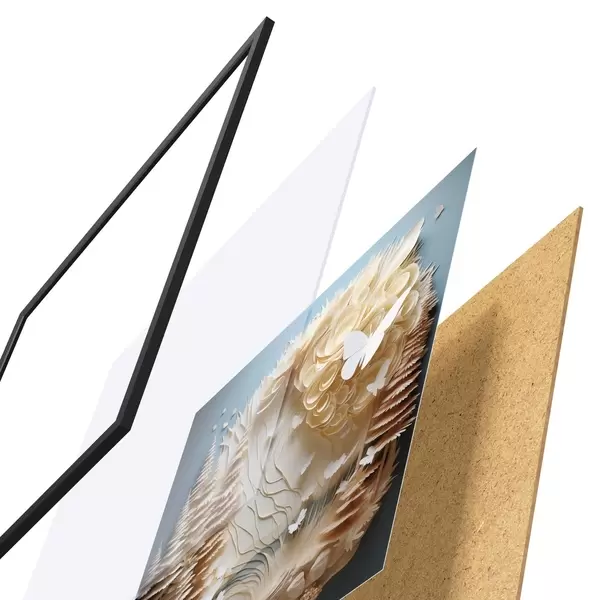 Le poster se compose d'un cadre, d'un plexiglas, d'une image imprimée et d'un support en aggloméré. Le poster peut être immédiatement accroché au mur grâce aux fixations au dos.