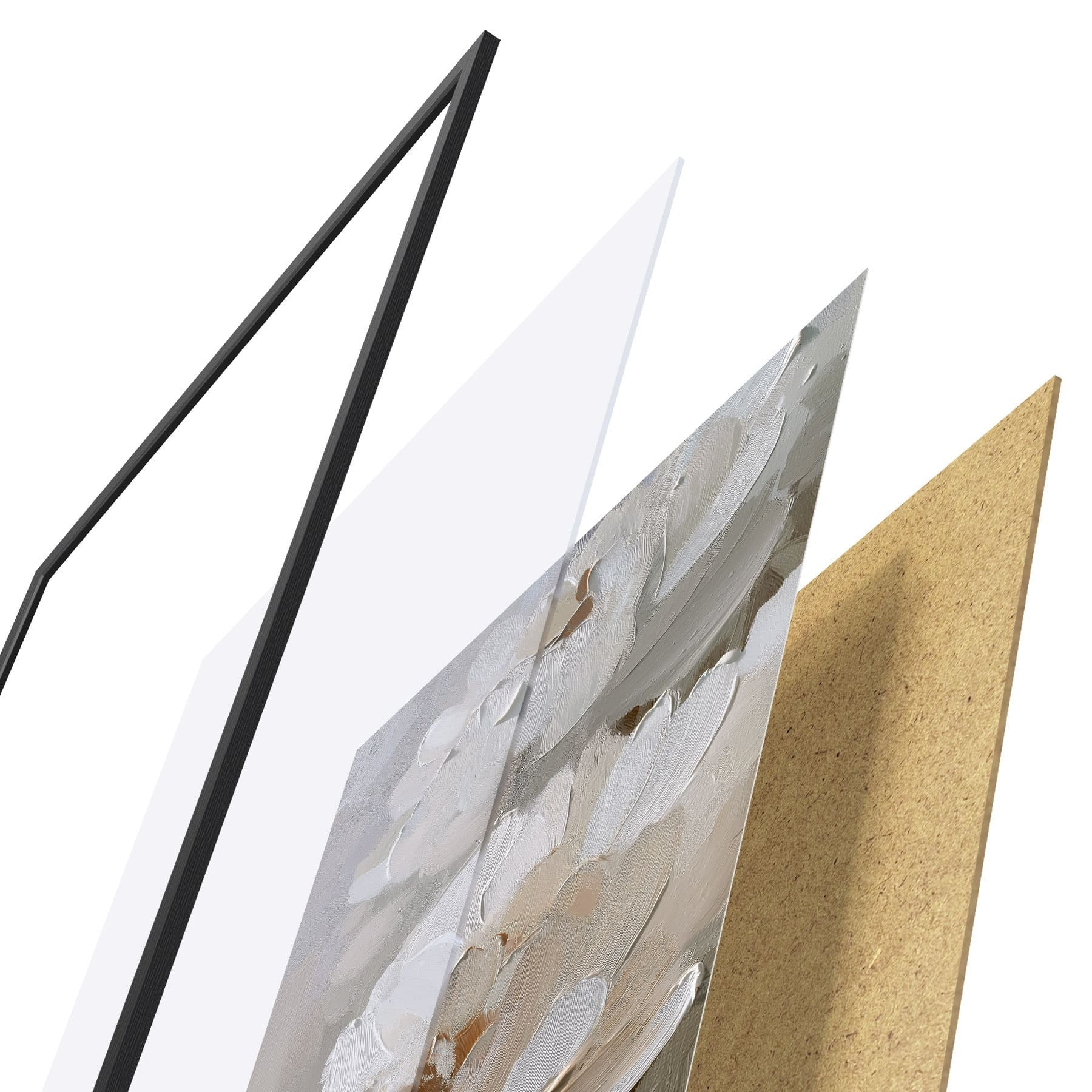 Le poster se compose d'un cadre, d'un plexiglas, d'une image imprimée et d'un support en aggloméré. Le poster peut être immédiatement accroché au mur grâce aux fixations au dos.