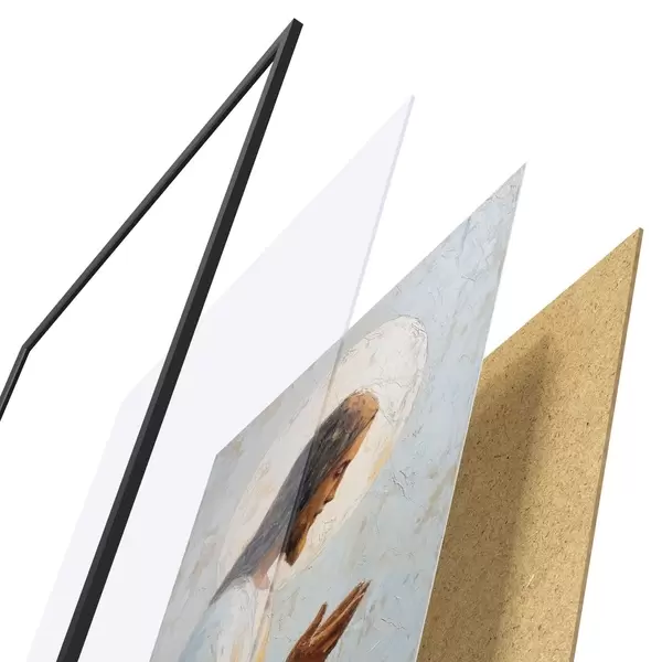 Le poster se compose d'un cadre, d'un plexiglas, d'une image imprimée et d'un support en aggloméré. Le poster peut être immédiatement accroché au mur grâce aux fixations au dos.