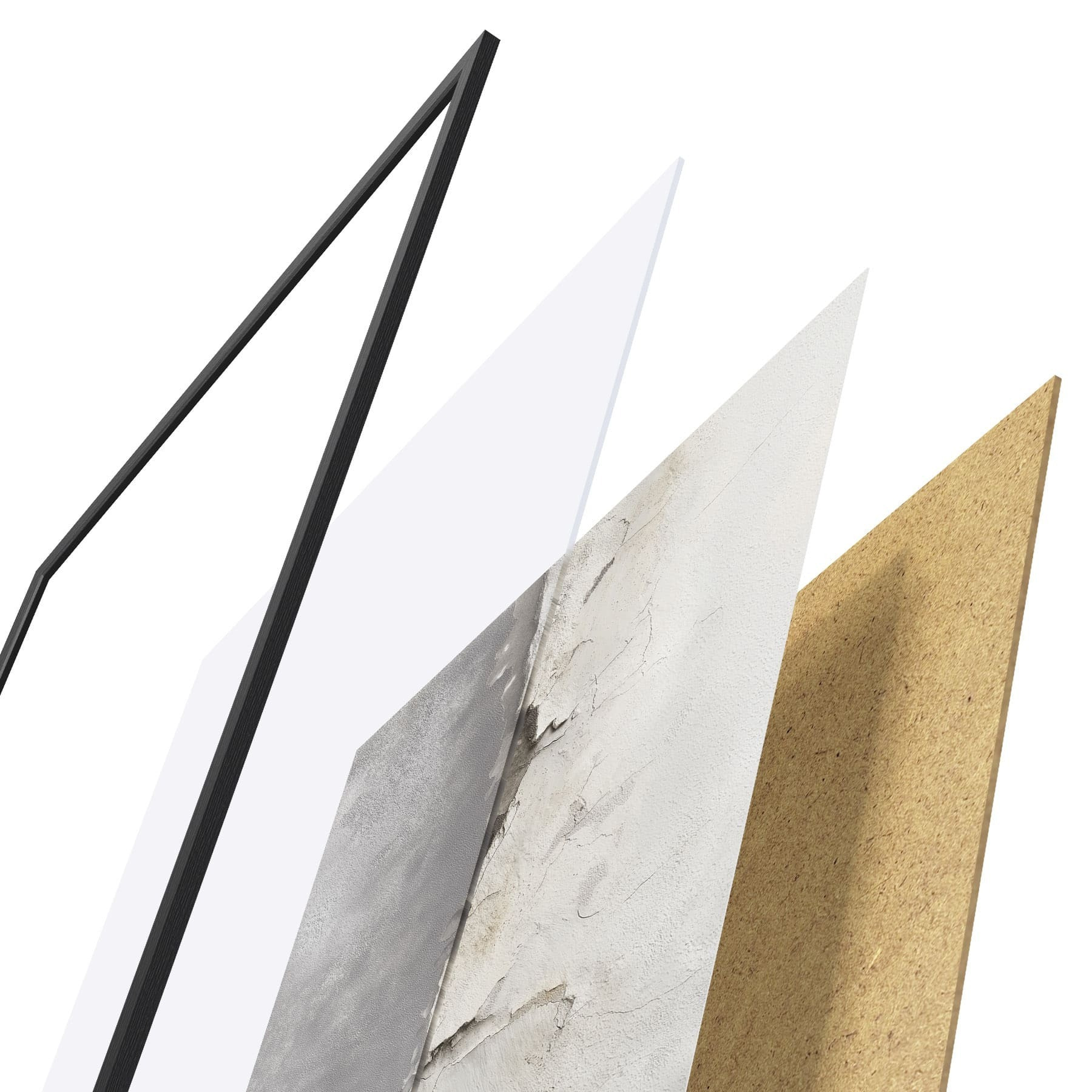 Le poster se compose d'un cadre, d'un plexiglas, d'une image imprimée et d'un support en aggloméré. Le poster peut être immédiatement accroché au mur grâce aux fixations au dos.