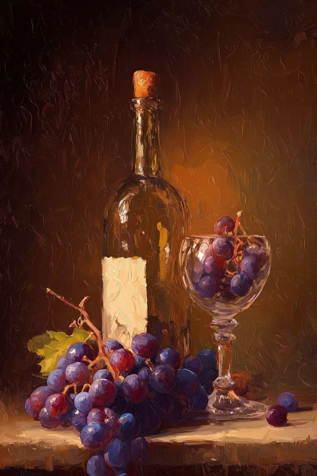 Affiche Nature morte avec du vin et des raisins Non f47922