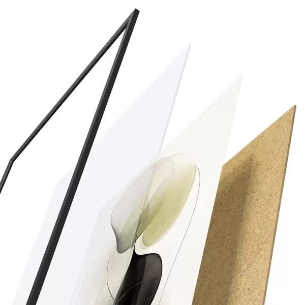 Le poster se compose d'un cadre, d'un plexiglas, d'une image imprimée et d'un support en aggloméré. Le poster peut être immédiatement accroché au mur grâce aux fixations au dos.