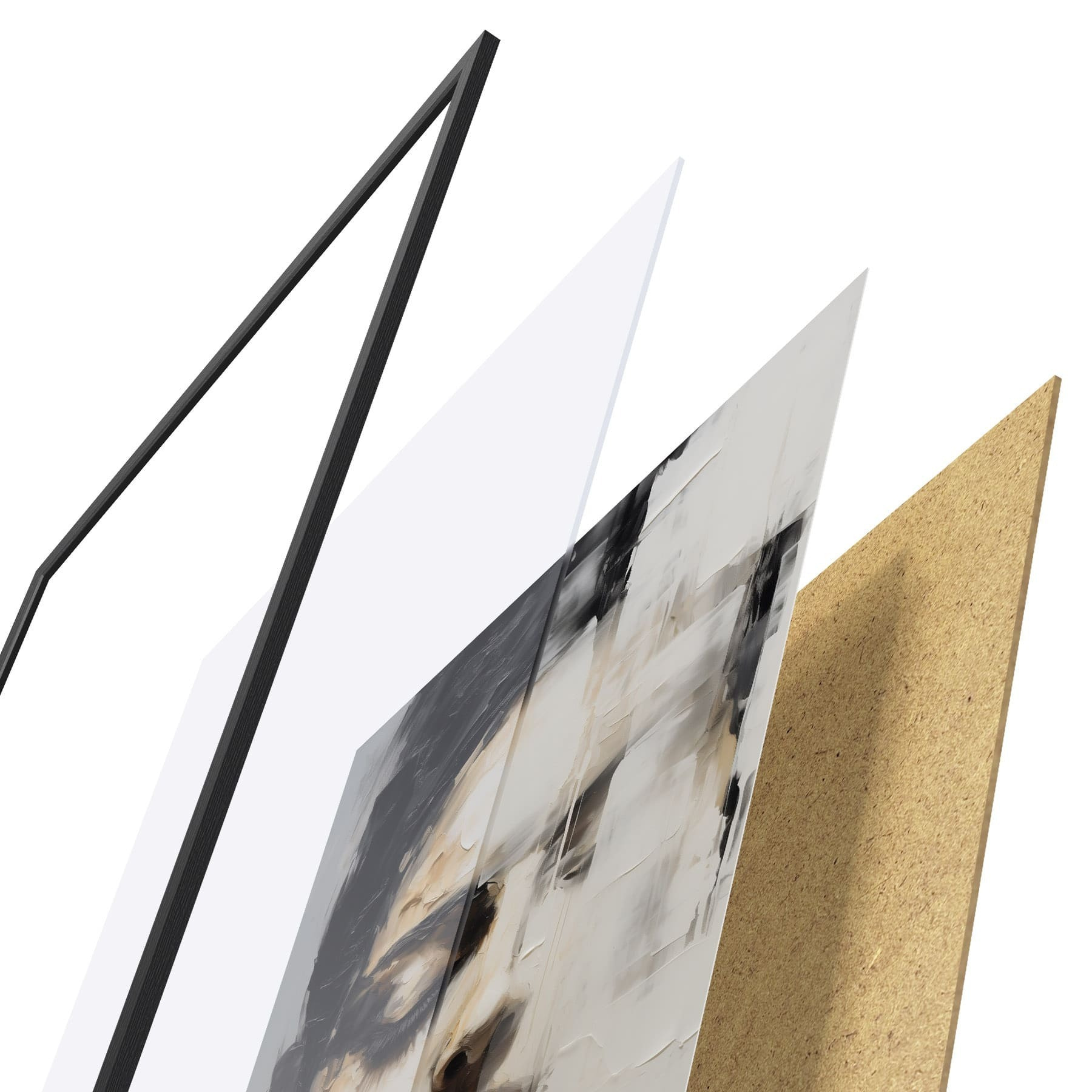 Le poster se compose d'un cadre, d'un plexiglas, d'une image imprimée et d'un support en aggloméré. Le poster peut être immédiatement accroché au mur grâce aux fixations au dos.