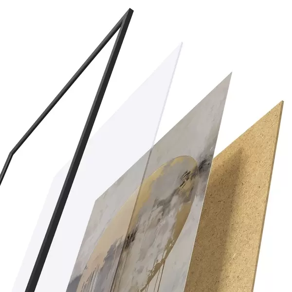 Le poster se compose d'un cadre, d'un plexiglas, d'une image imprimée et d'un support en aggloméré. Le poster peut être immédiatement accroché au mur grâce aux fixations au dos.