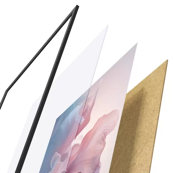 Le poster se compose d'un cadre, d'un plexiglas, d'une image imprimée et d'un support en aggloméré. Le poster peut être immédiatement accroché au mur grâce aux fixations au dos.