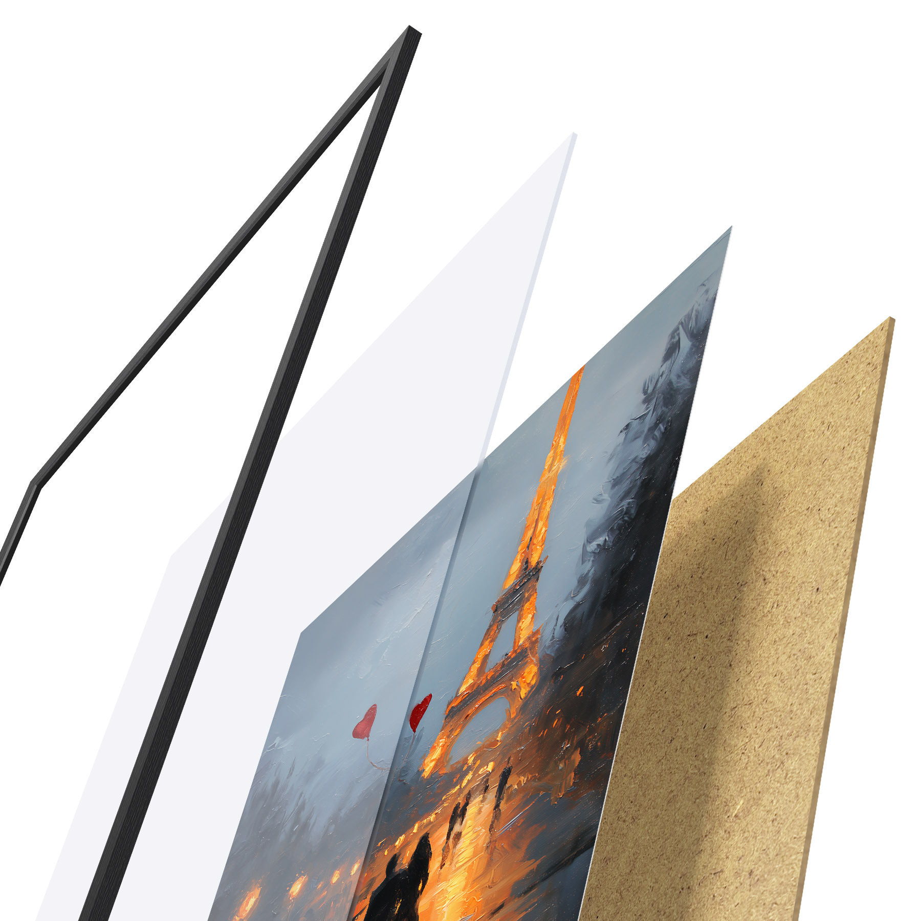 Le poster se compose d'un cadre, d'un plexiglas, d'une image imprimée et d'un support en aggloméré. Le poster peut être immédiatement accroché au mur grâce aux fixations au dos.