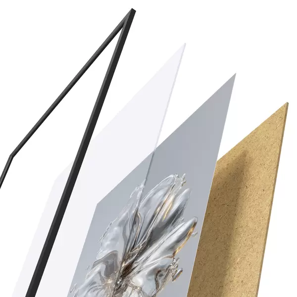 Le poster se compose d'un cadre, d'un plexiglas, d'une image imprimée et d'un support en aggloméré. Le poster peut être immédiatement accroché au mur grâce aux fixations au dos.