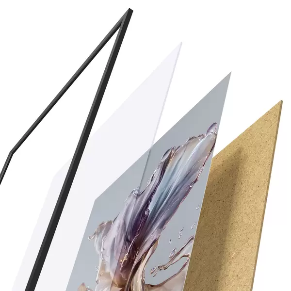 Le poster se compose d'un cadre, d'un plexiglas, d'une image imprimée et d'un support en aggloméré. Le poster peut être immédiatement accroché au mur grâce aux fixations au dos.
