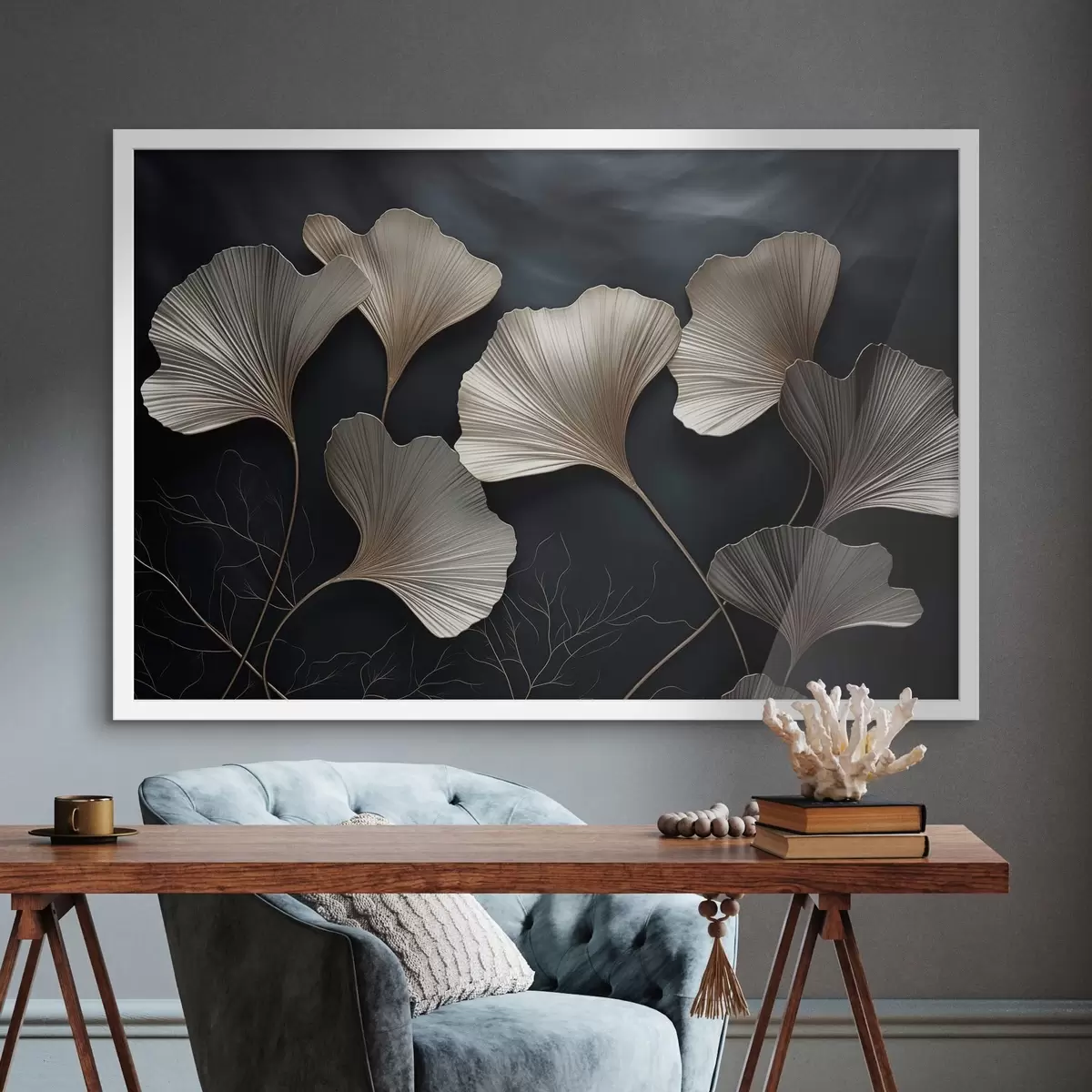 Affiche Feuilles de ginkgo sur fond sombre f48008
