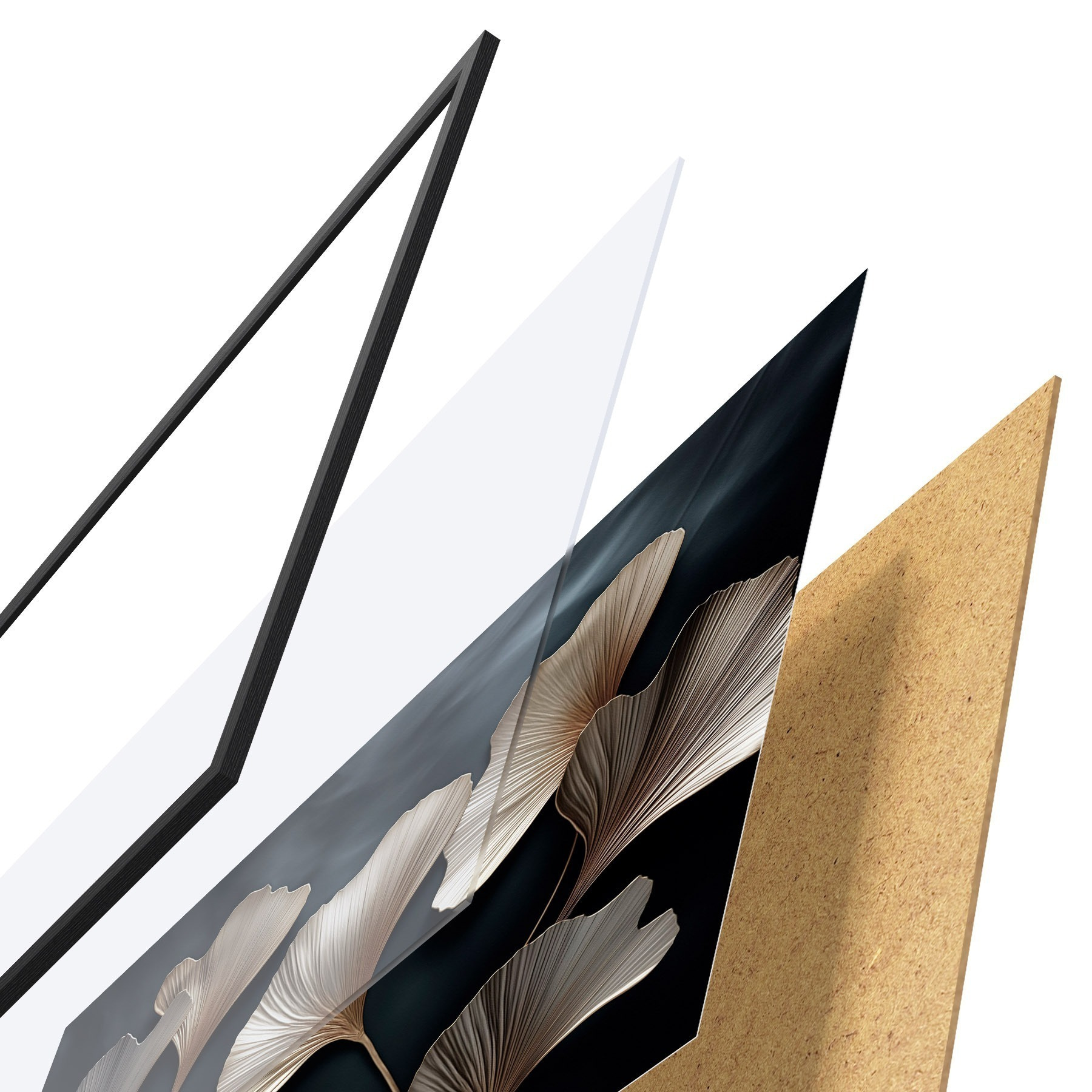 Le poster se compose d'un cadre, d'un plexiglas, d'une image imprimée et d'un support en aggloméré. Le poster peut être immédiatement accroché au mur grâce aux fixations au dos.