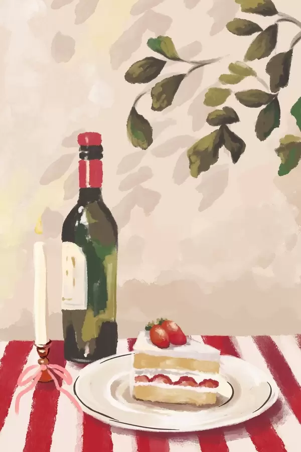 Affiche Nature morte avec vin, bougie et gâteau Non f48024