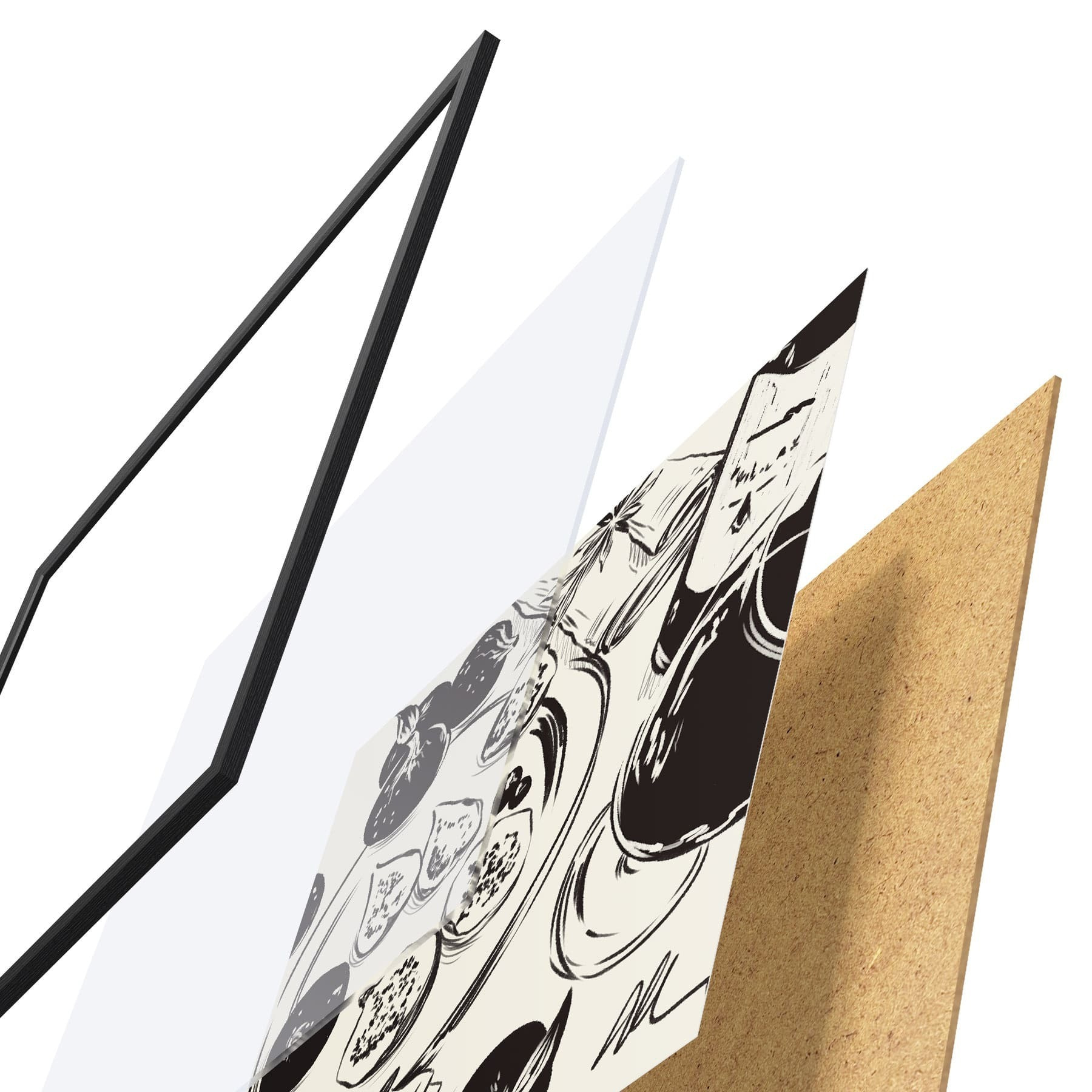 Le poster se compose d'un cadre, d'un plexiglas, d'une image imprimée et d'un support en aggloméré. Le poster peut être immédiatement accroché au mur grâce aux fixations au dos.
