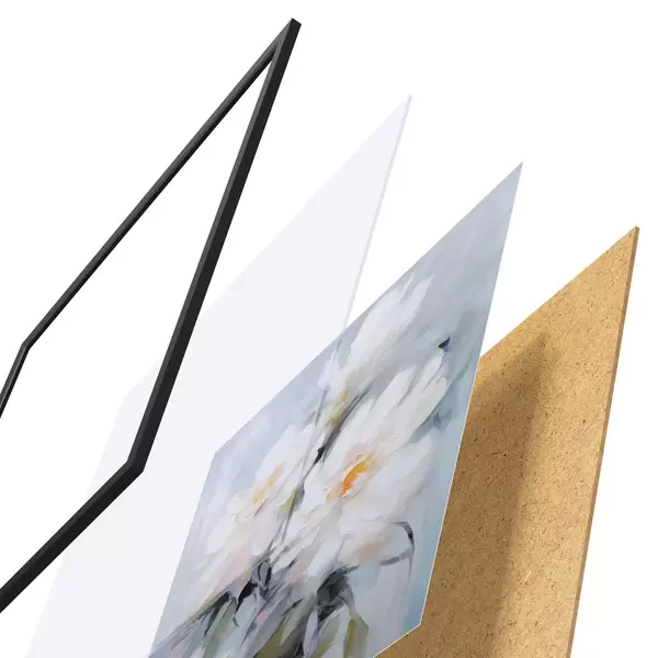 Le poster se compose d'un cadre, d'un plexiglas, d'une image imprimée et d'un support en aggloméré. Le poster peut être immédiatement accroché au mur grâce aux fixations au dos.