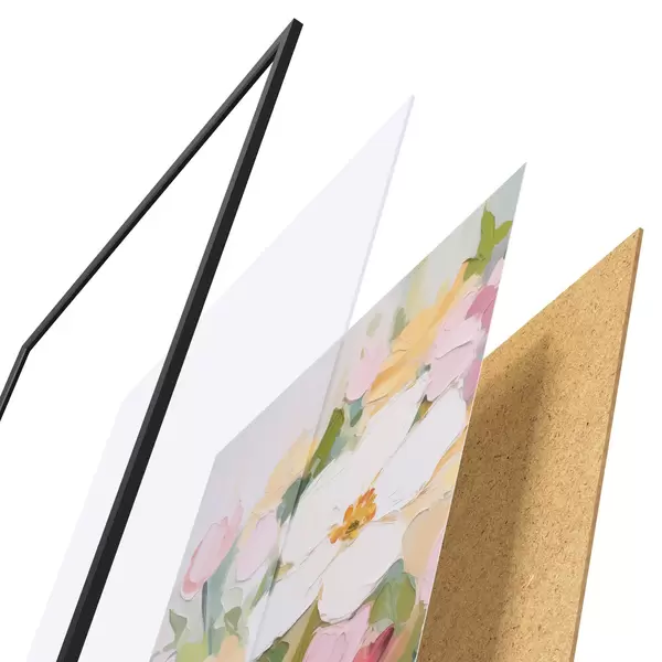 Le poster se compose d'un cadre, d'un plexiglas, d'une image imprimée et d'un support en aggloméré. Le poster peut être immédiatement accroché au mur grâce aux fixations au dos.