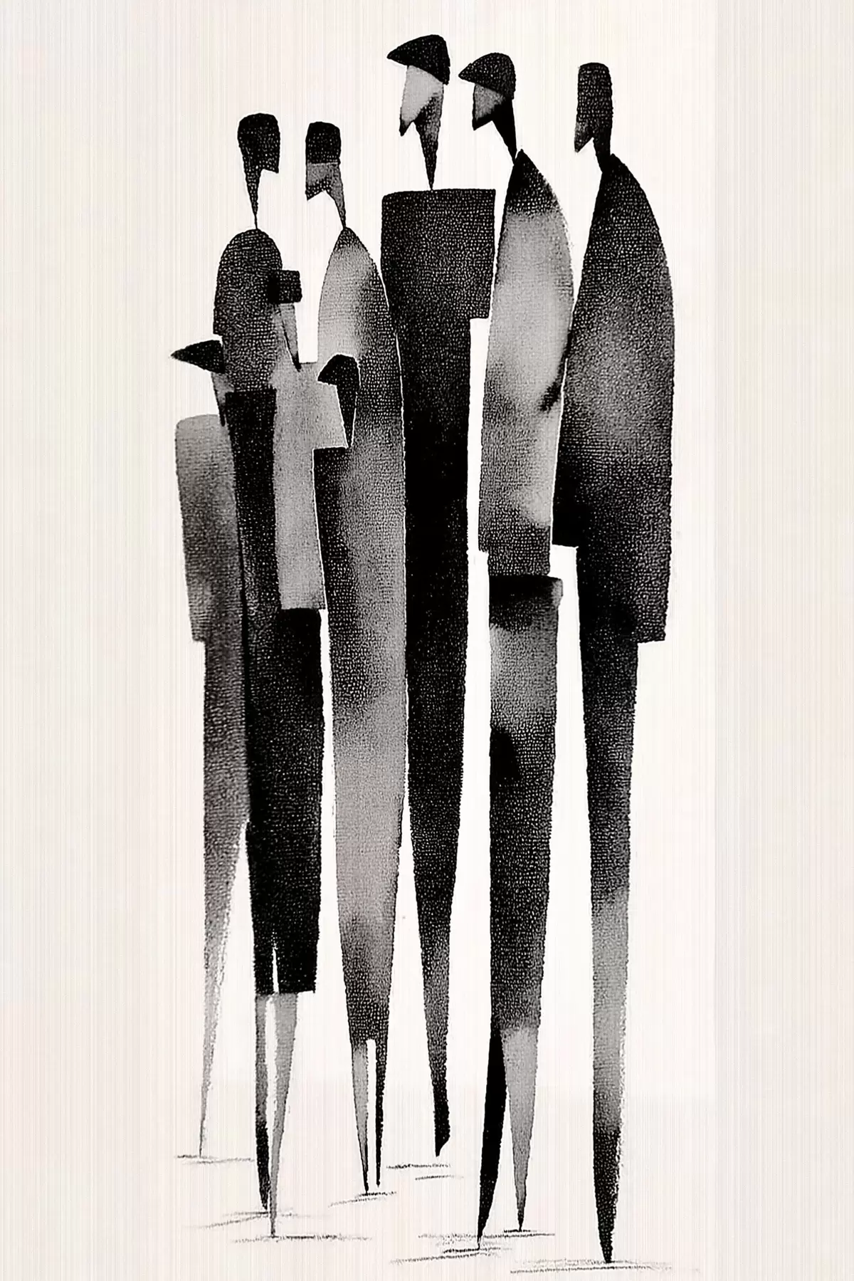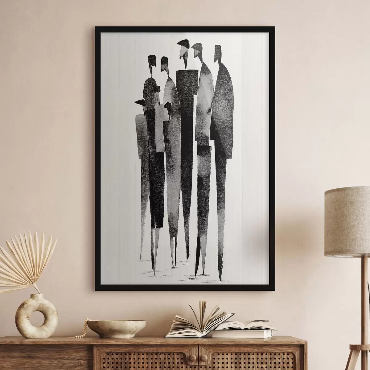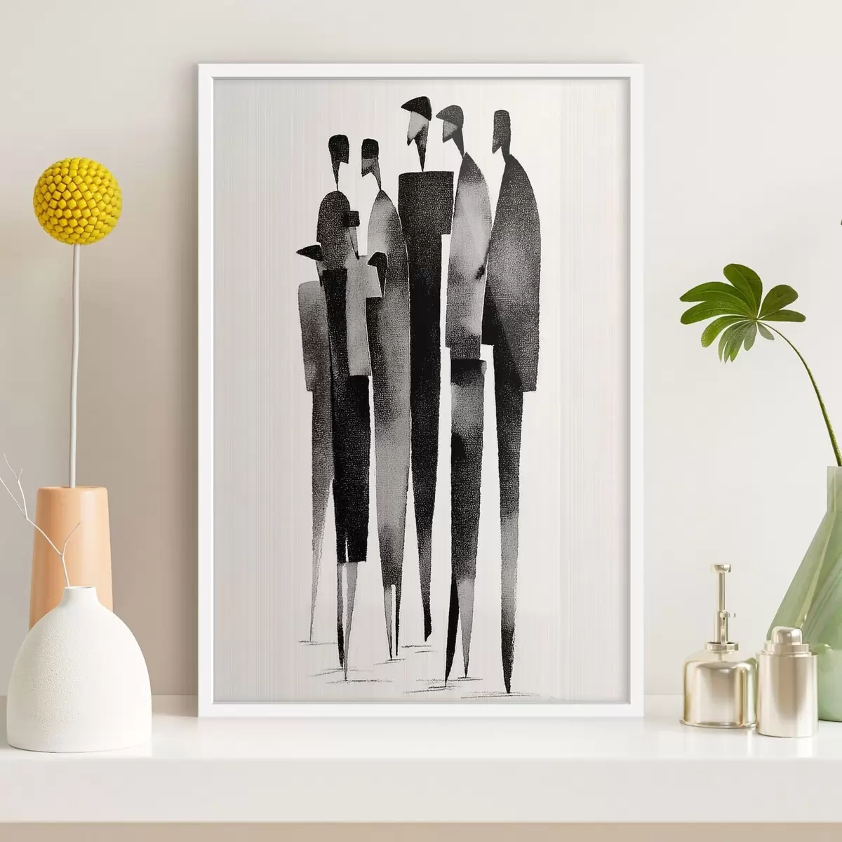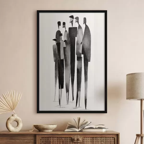 Affiche figures humaines minimalistes allongées, debout en rang f48068