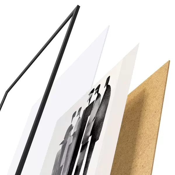 Le poster se compose d'un cadre, d'un plexiglas, d'une image imprimée et d'un support en aggloméré. Le poster peut être immédiatement accroché au mur grâce aux fixations au dos.