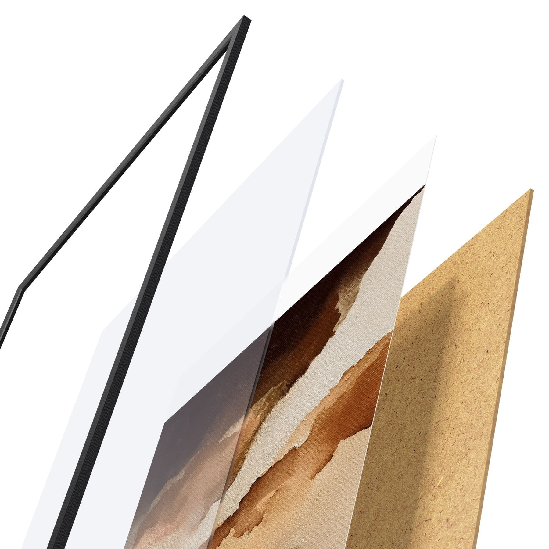 Le poster se compose d'un cadre, d'un plexiglas, d'une image imprimée et d'un support en aggloméré. Le poster peut être immédiatement accroché au mur grâce aux fixations au dos.