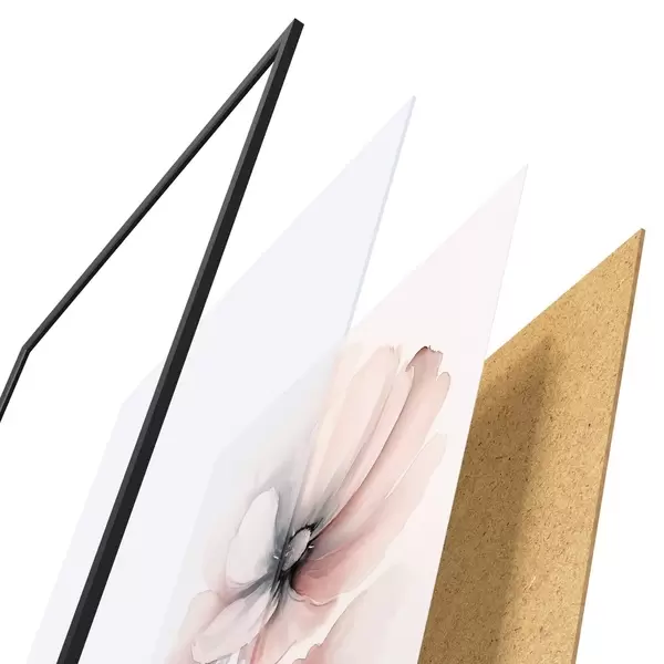 Le poster se compose d'un cadre, d'un plexiglas, d'une image imprimée et d'un support en aggloméré. Le poster peut être immédiatement accroché au mur grâce aux fixations au dos.