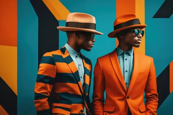 Affiche Deux hommes en costumes et chapeaux colorés f48091