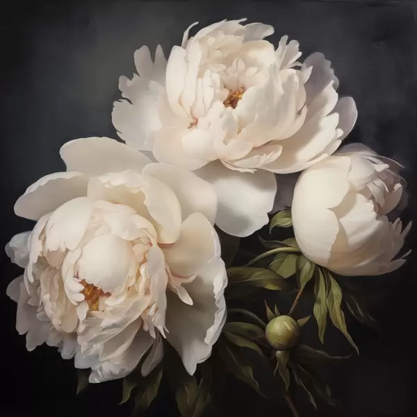 Affiche Pivoines blanches sur fond sombre Non f48101