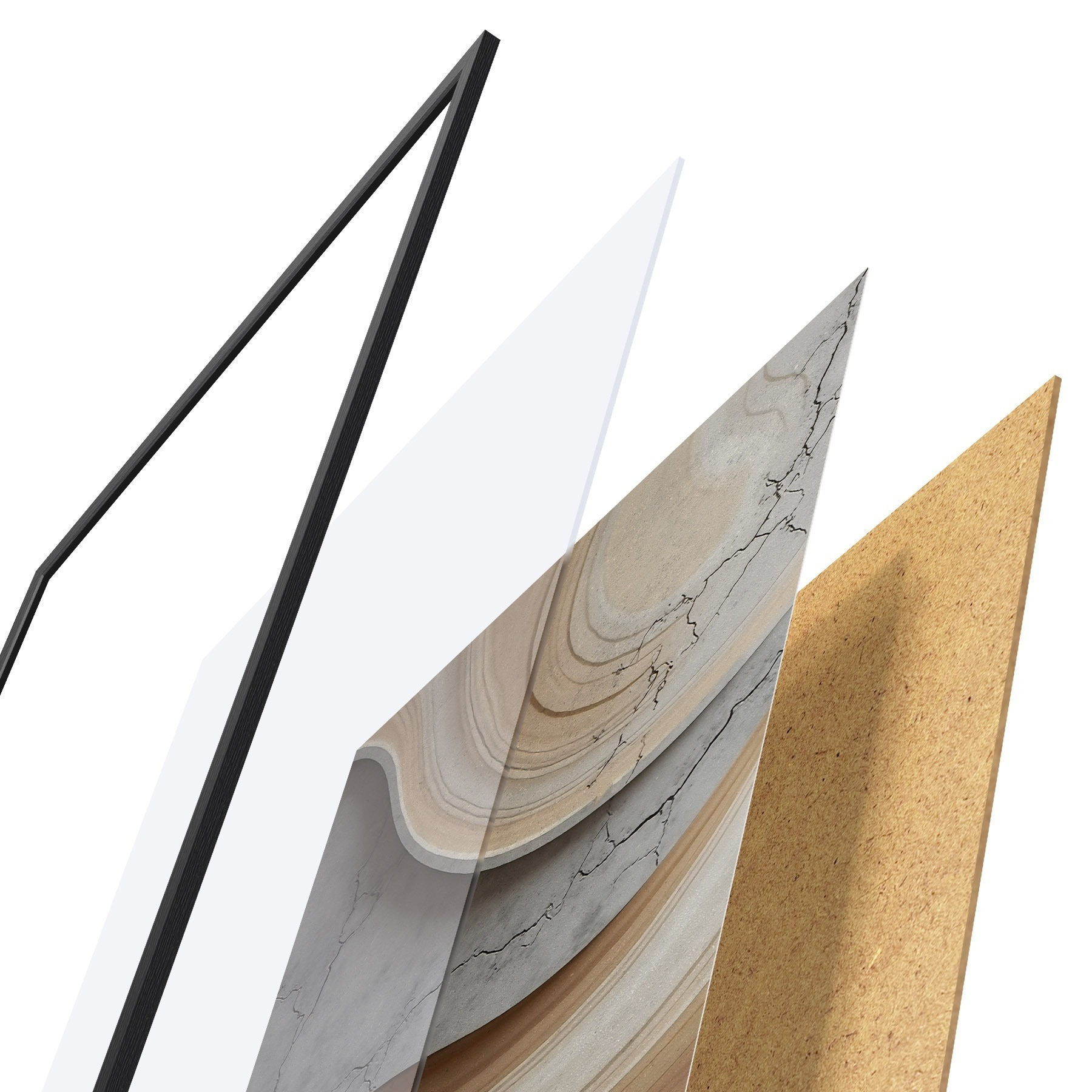 Le poster se compose d'un cadre, d'un plexiglas, d'une image imprimée et d'un support en aggloméré. Le poster peut être immédiatement accroché au mur grâce aux fixations au dos.