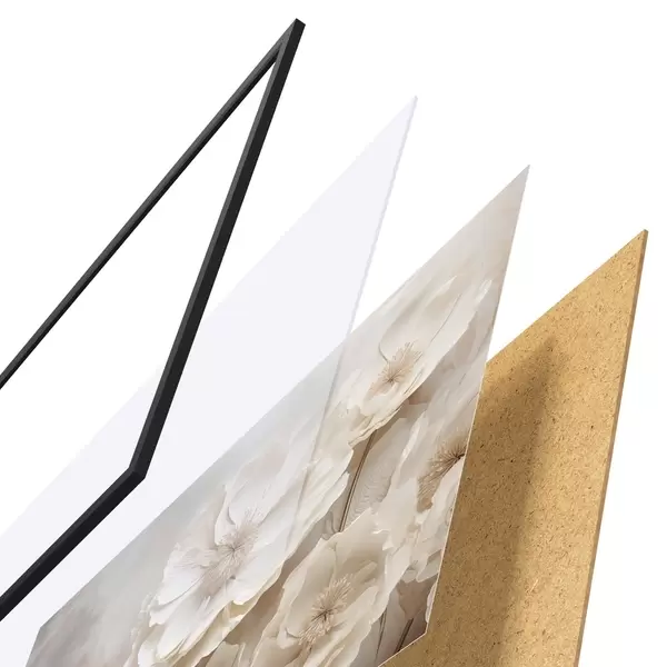 Le poster se compose d'un cadre, d'un plexiglas, d'une image imprimée et d'un support en aggloméré. Le poster peut être immédiatement accroché au mur grâce aux fixations au dos.