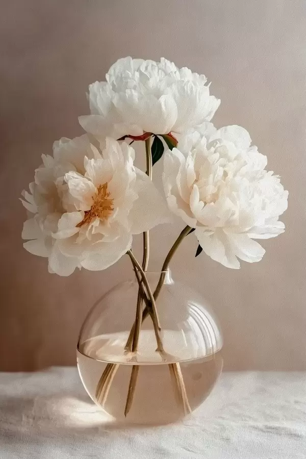 Affiche nature morte minimaliste et aérienne avec des pivoines Non f48119