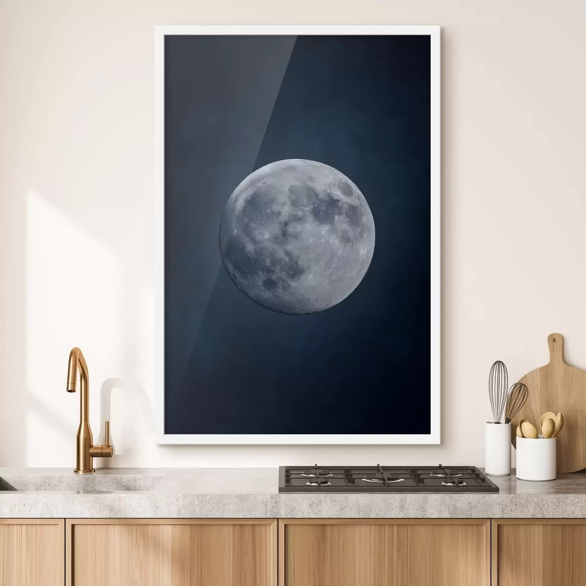 Affiche pleine lune centrée sur un fond texturé bleu marine foncé Non f48122